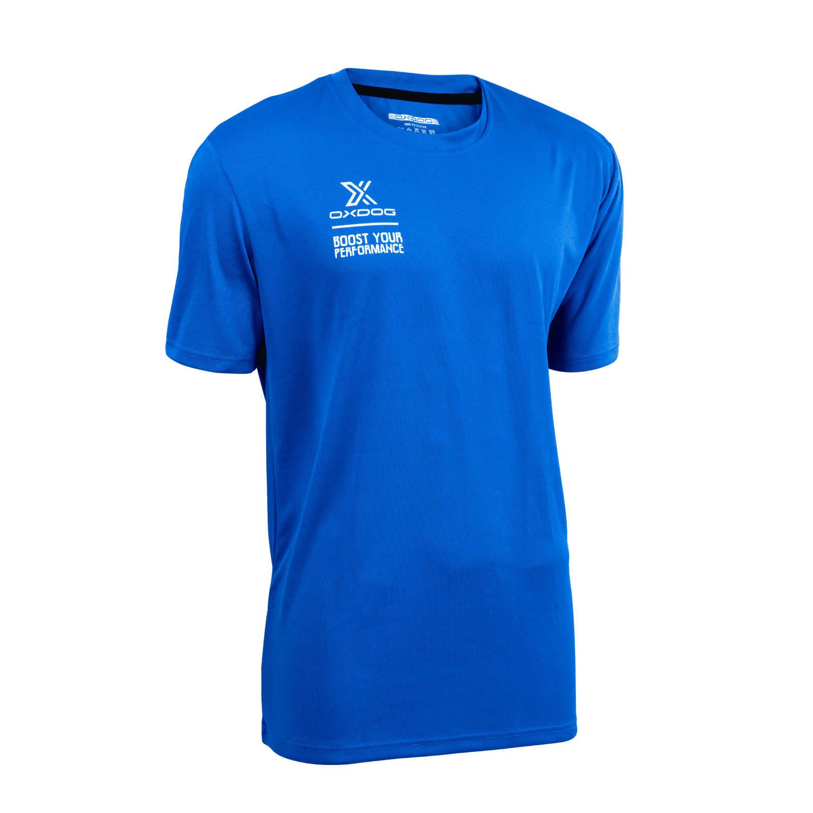 Camiseta técnica de 100% poliéster de entrenamiento, color azul.