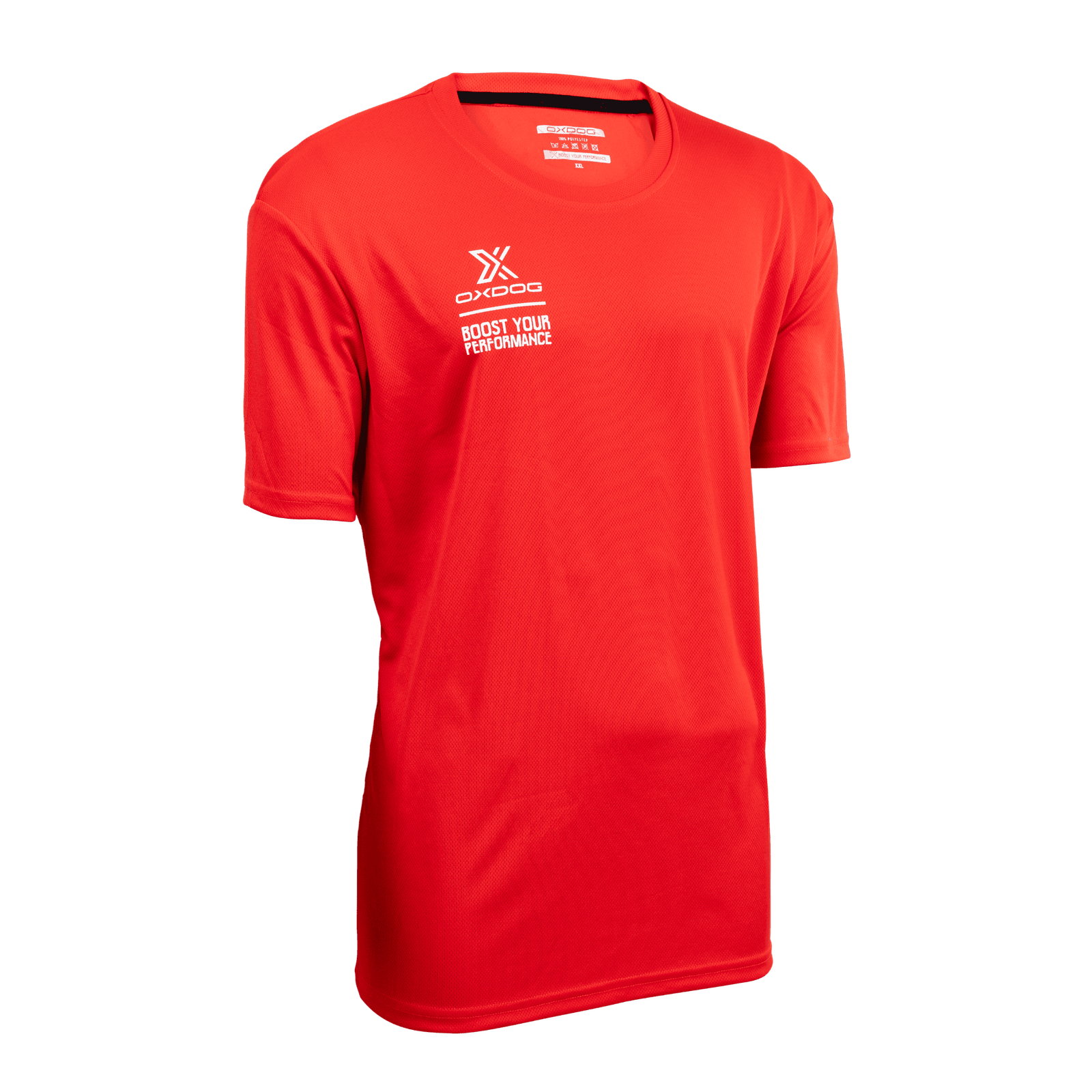 Camiseta técnica de 100% poliéster de entrenamiento, color rojo.