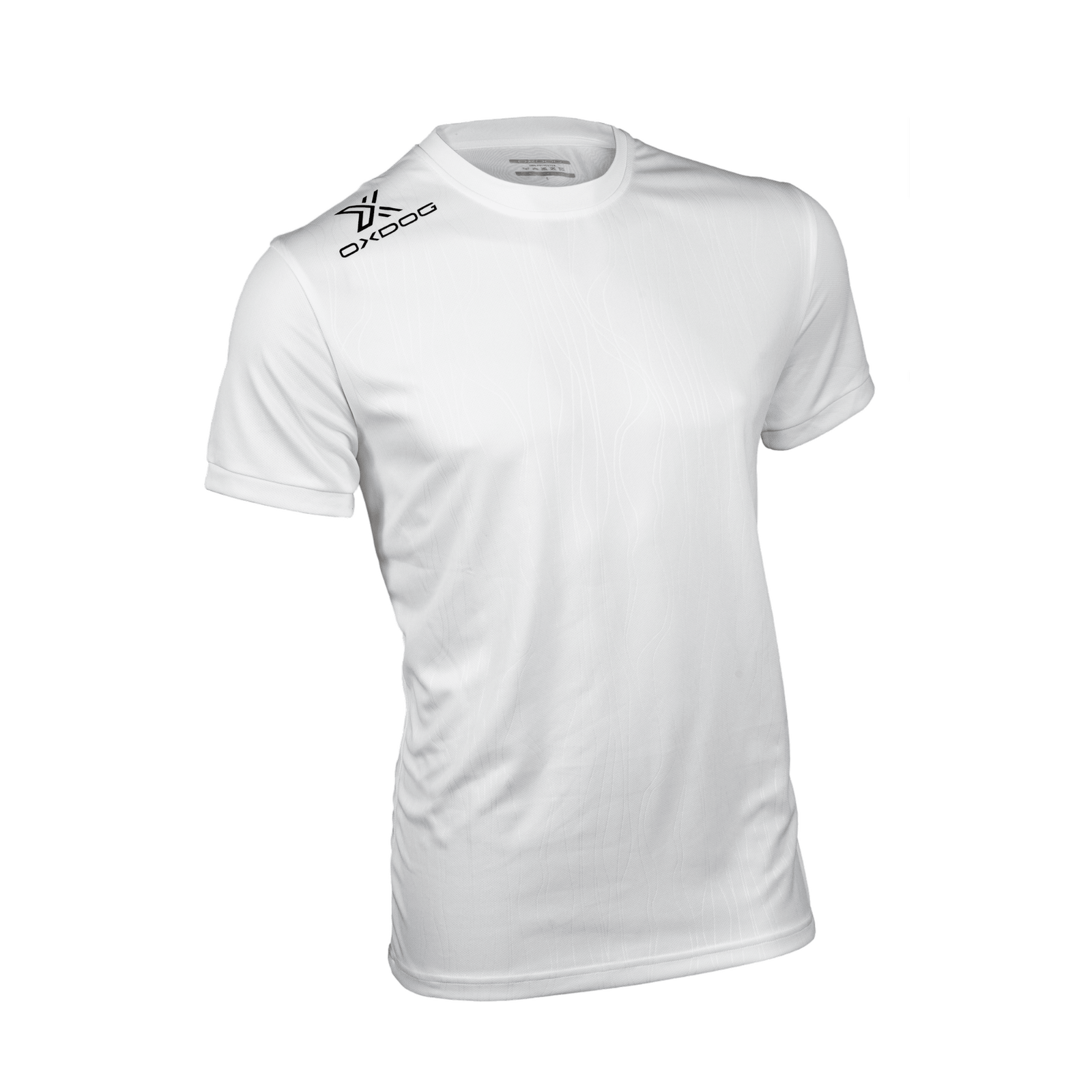 Camiseta técnica blanca fabricada con material DryFast, con tejido 100% poliéster.