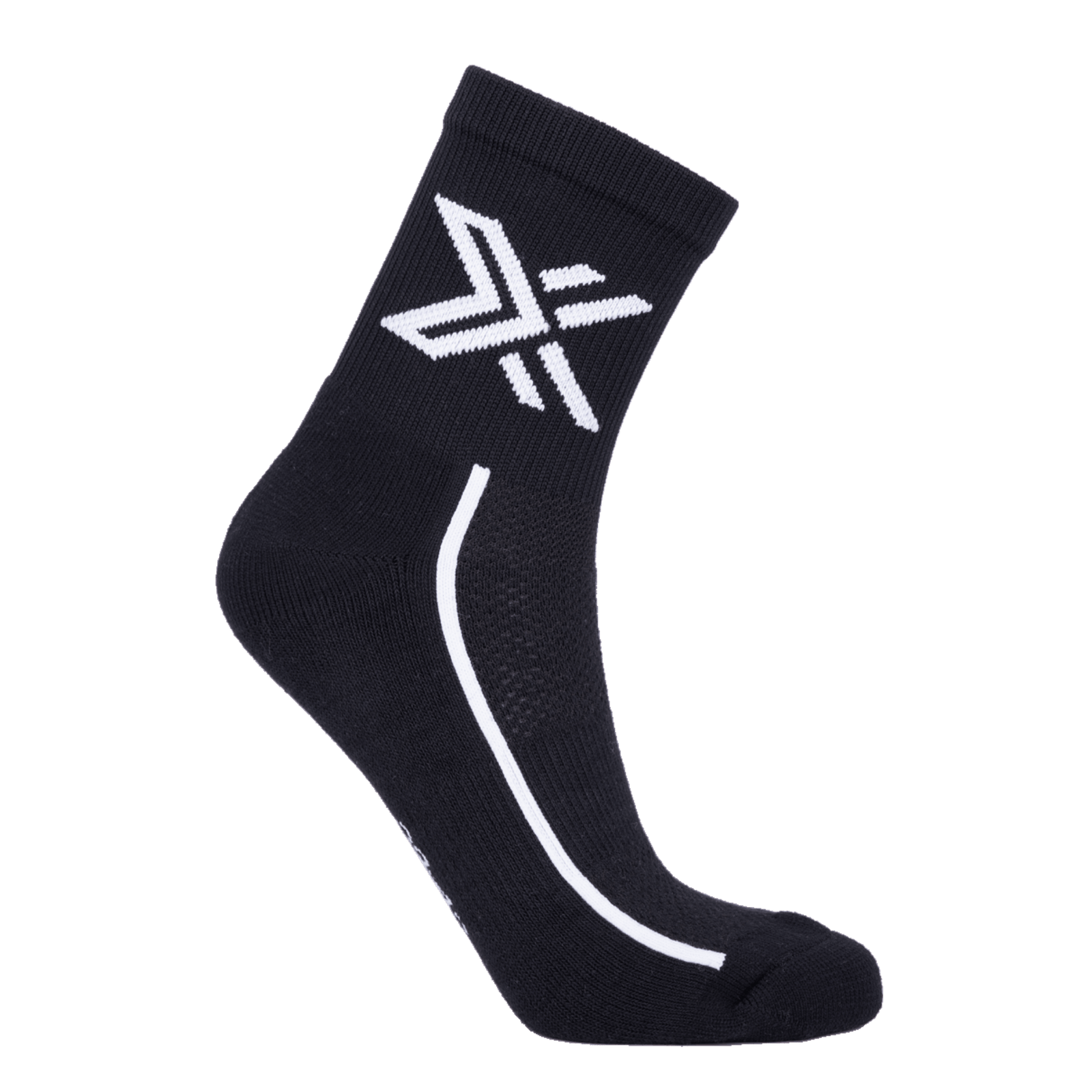 Medias técnicas con banda elástica en talón y pie en color negro. Zonas de puntera y talón reforzadas para mayor durabilidad. Tejido 50% poliamida, 35% algodón y 15% spandex.